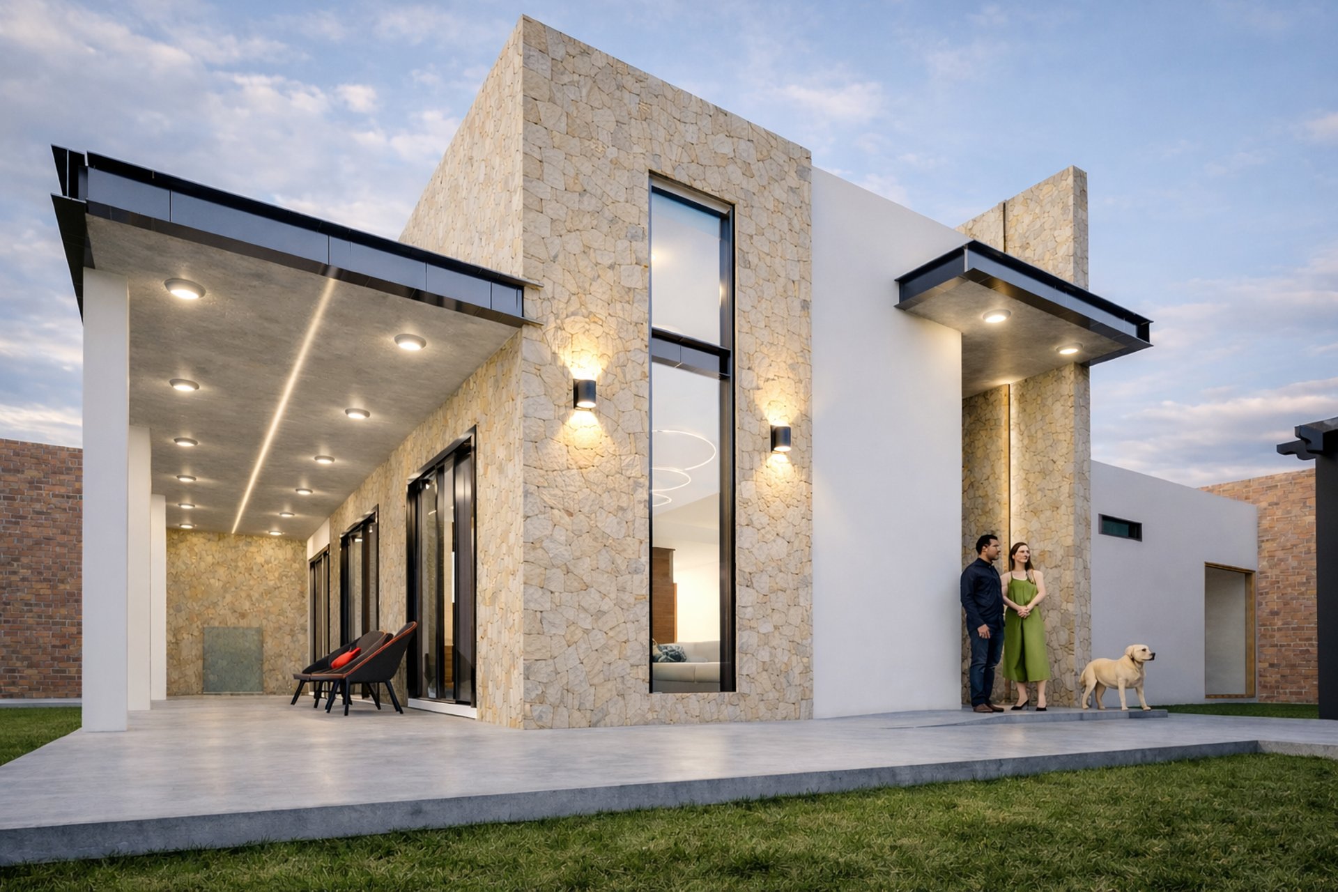 Casa habitación residencial, un diseño exclusivo, inspirado por el minimalismo, formas sencilles, la seguridad y la calidad de un hogar, pensada a futuro para la vejes, todo sobre un mismo nivel.